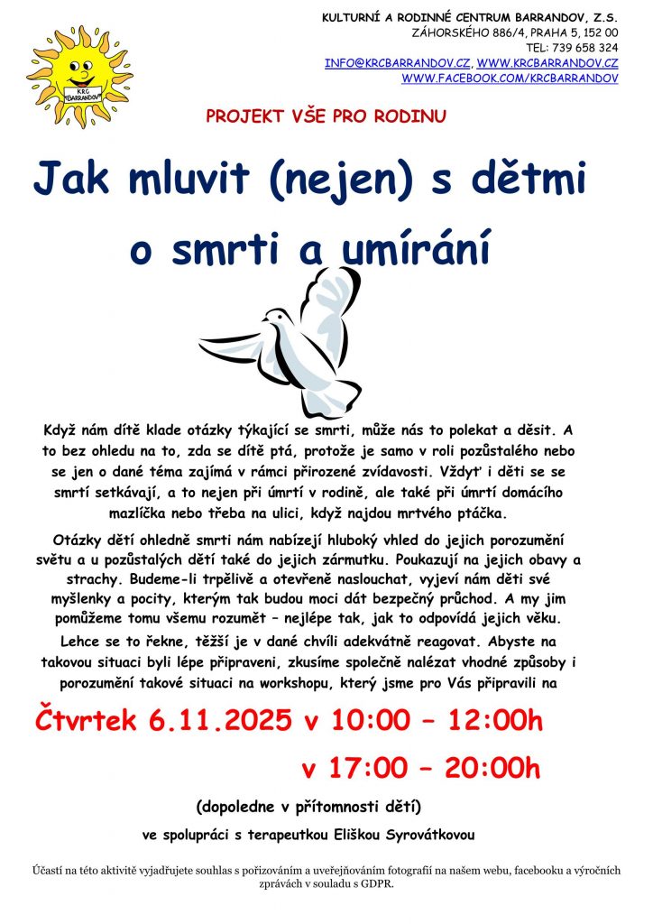 – Jak mluvit (nejen) s dětmi o smrti a umírání – KRC Barrandov (6.11.2025) 31.10.2025 by KPSS Praha 5